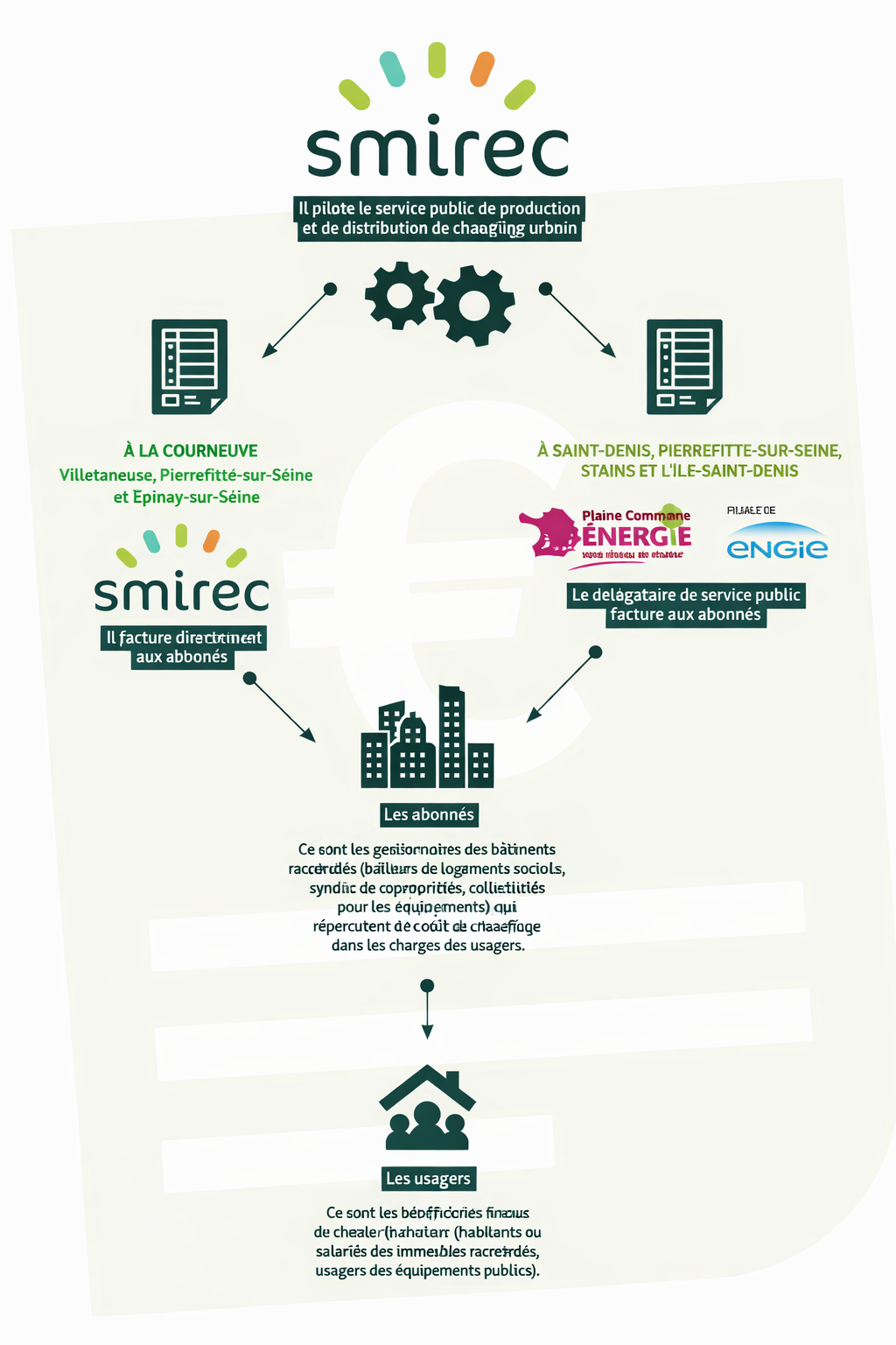 - À La Courneuve, le Smirec facture directement la fourniture de chaleur aux abonnés (sociétés HLM, copropriétés, équipements publics...).
